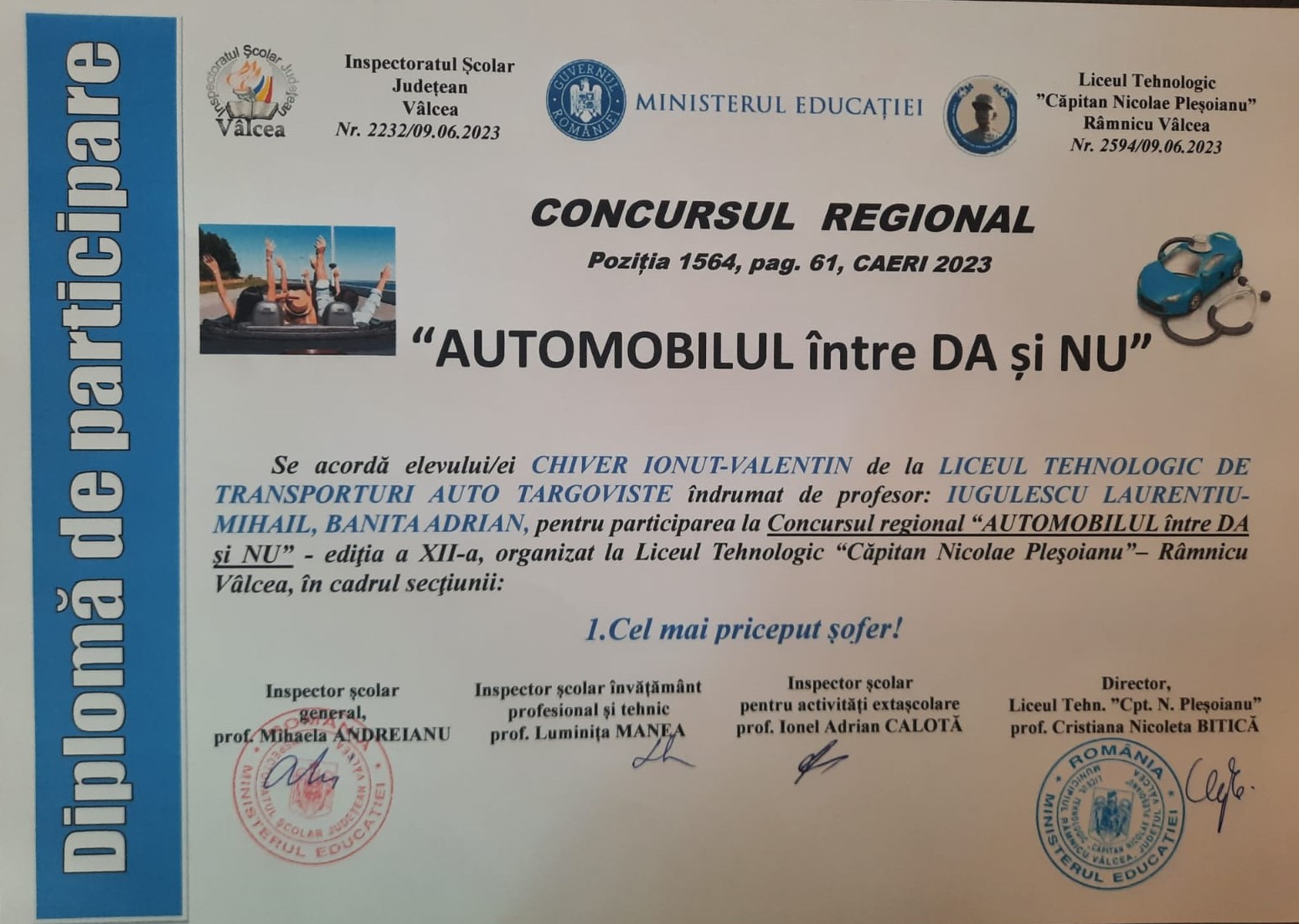 Concursul Regional "Automobilul intre DA si NU", editia a XII-a, Iunie 2023