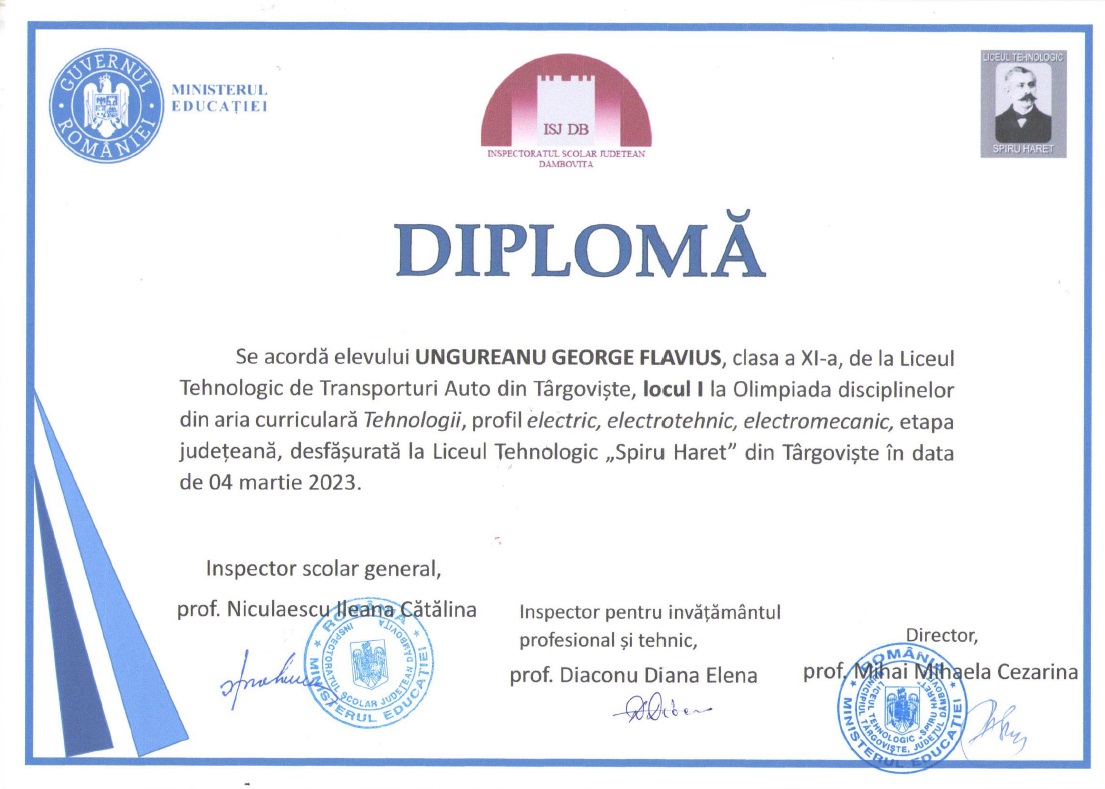 | Ungureanu George Flavius | a XI-a | Electric, electrotehnic, electromecanic | Locul I |